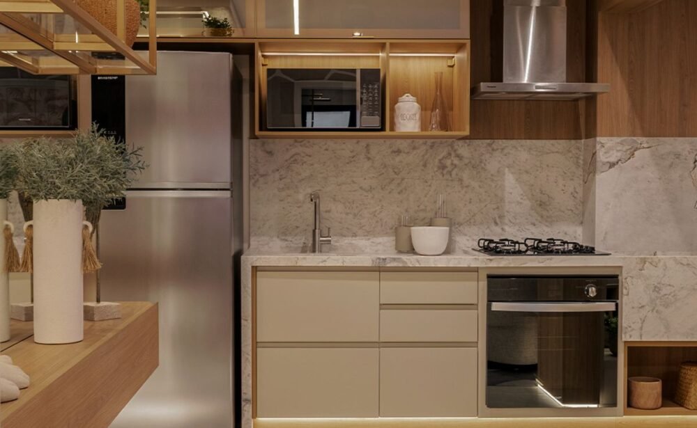 Ao projetarmos cozinhas planejadas, buscamos sempre equilibrar estética e funcionalidade, garantindo que cada detalhe seja pensado para facilitar o seu dia a dia, desde o armazenamento até a facilidade de circulação.